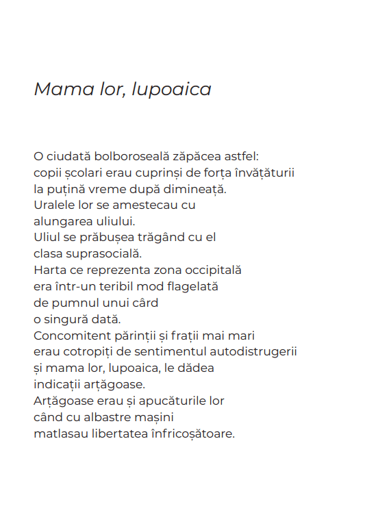 Acest volum de poezii reprezintă debutul său editorial individual.