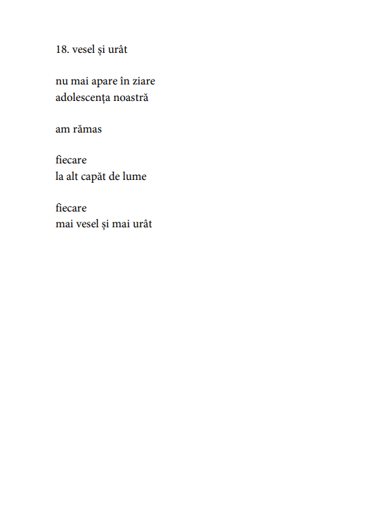 Tudor Voicu este Poet. El transformă resturile lumii în Poezie, banalul în metaforă, detaliul în viziune. Cu sensibilitate și umor, autorul construiește o metafizică proprie și un stil personal prin care se salvează magistral din deșertul de grafomanie și veleitarism care e poezia română contemporană. Citiți-l!